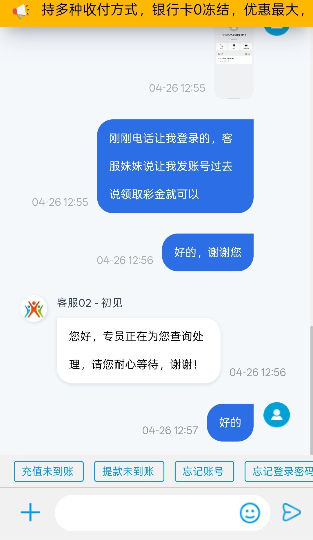 有充值过的老哥可以尝试联系客服碰瓷一下回归彩金看看在不在电话名单中,彩金一倍流水