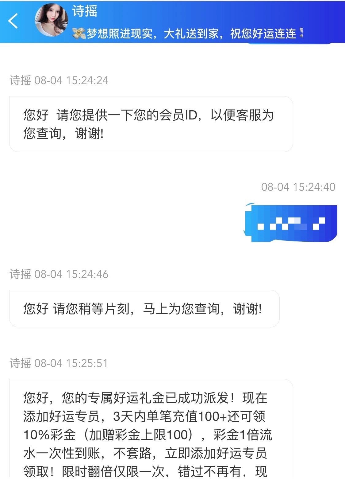 登入上去看看有没有收到这信息,有的话联系客服领取在联系68专员还能在领一次
